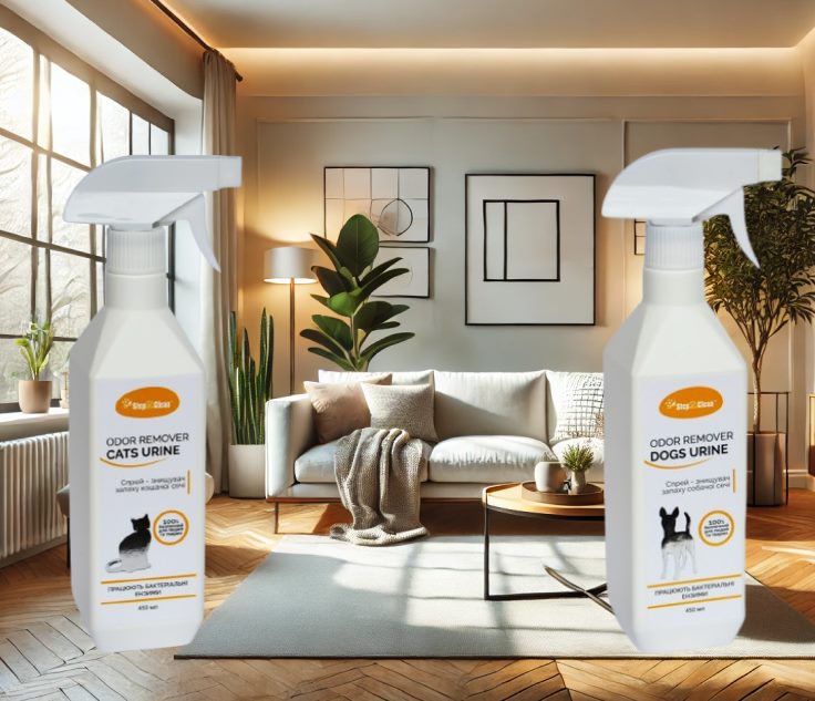 Спрей для видалення неприємного запаху котячої сечі та міток за рахунок біоферментної технології.